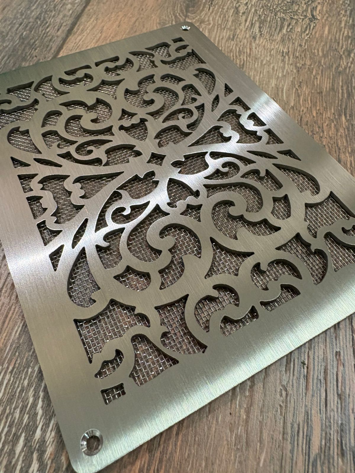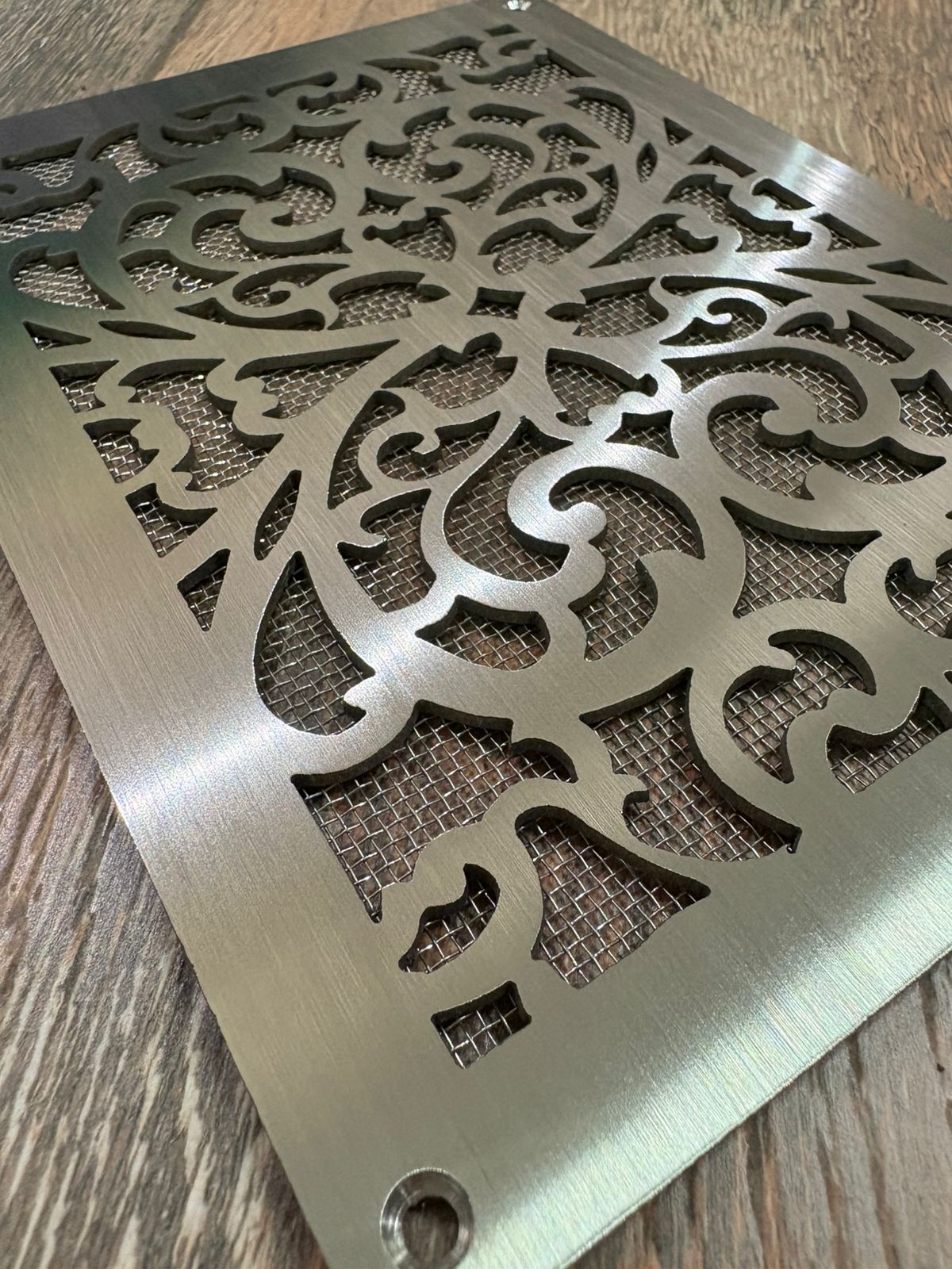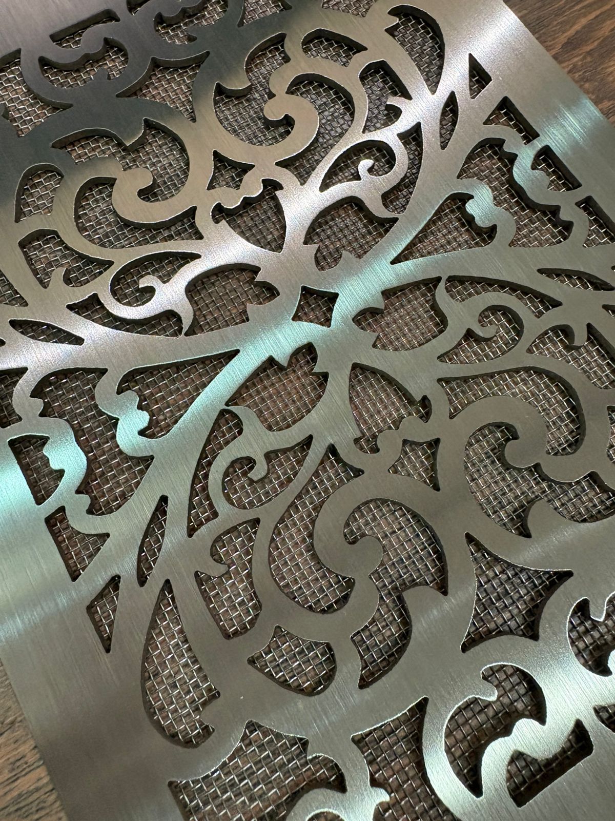 • Рисунок на решетки производится путем лазерной резки с ручной доработкой. Возможно изготовление любого рисунка, любого размера и формы по Вашим эскизам.